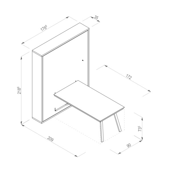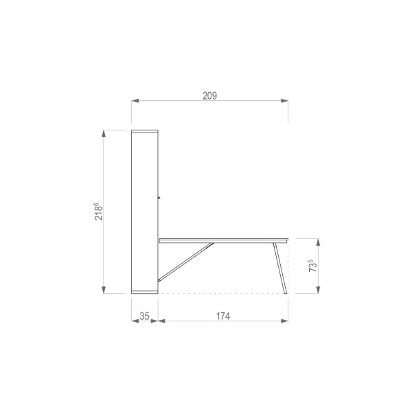 Ez a falágy az asztalokkal kombinált falágyak tagja, vízszintesen nyíló egyszemélyes matraccal, mindössze
