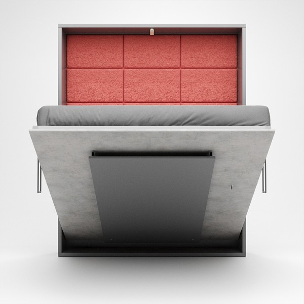 az ágy egy elegáns, diszkrét szekrénynek tűnik, mely alig foglal helyet a