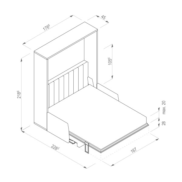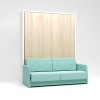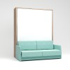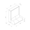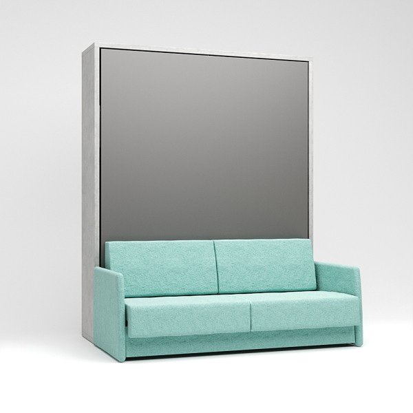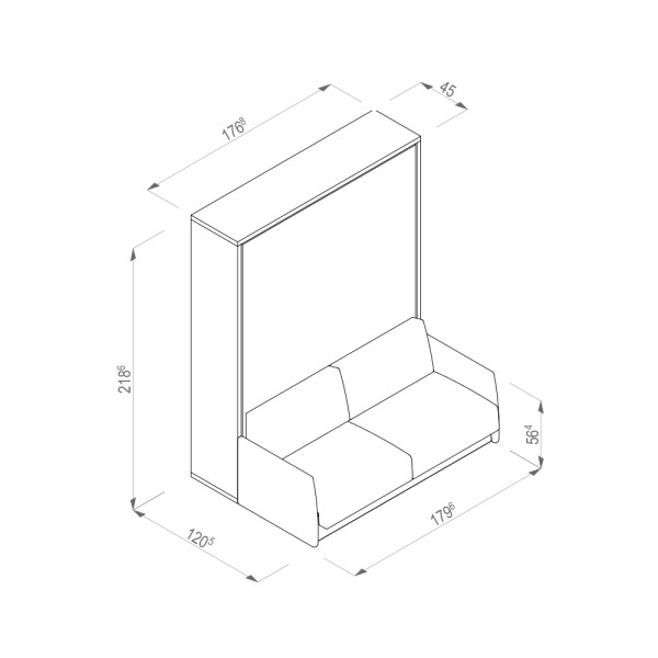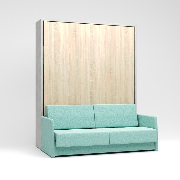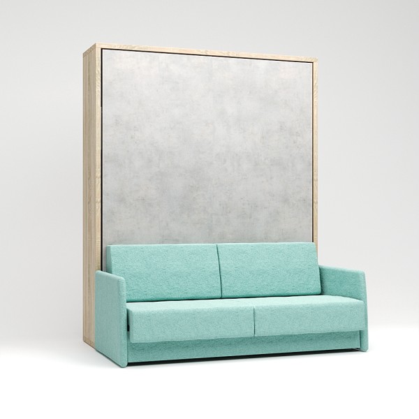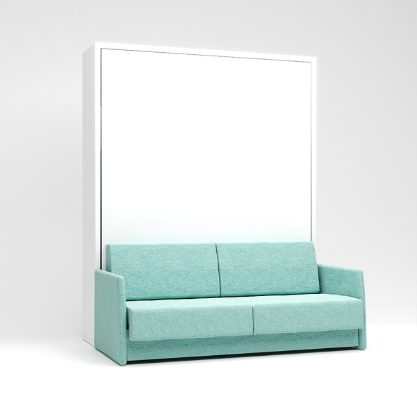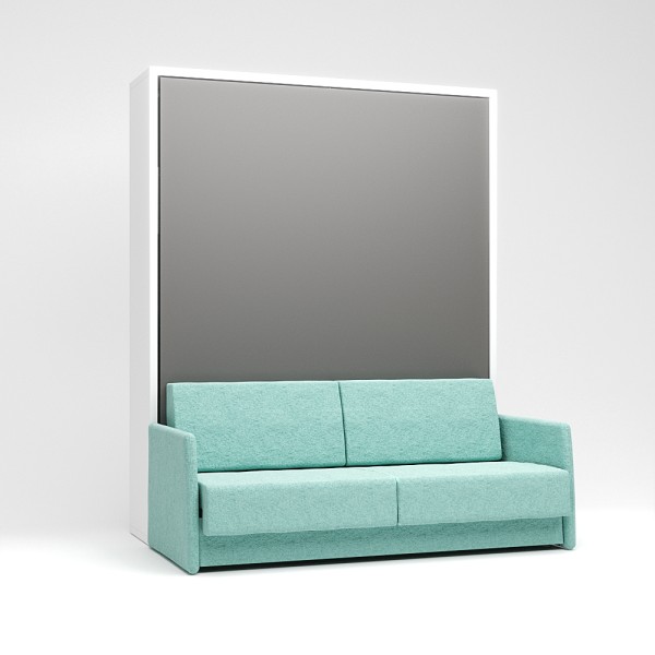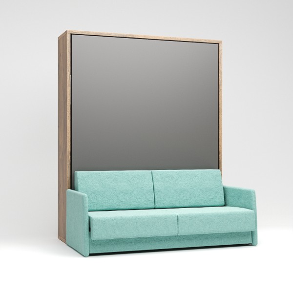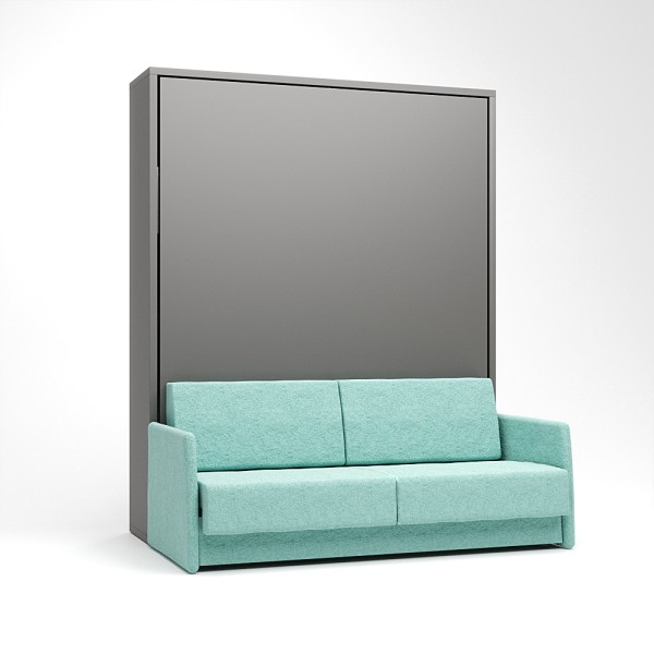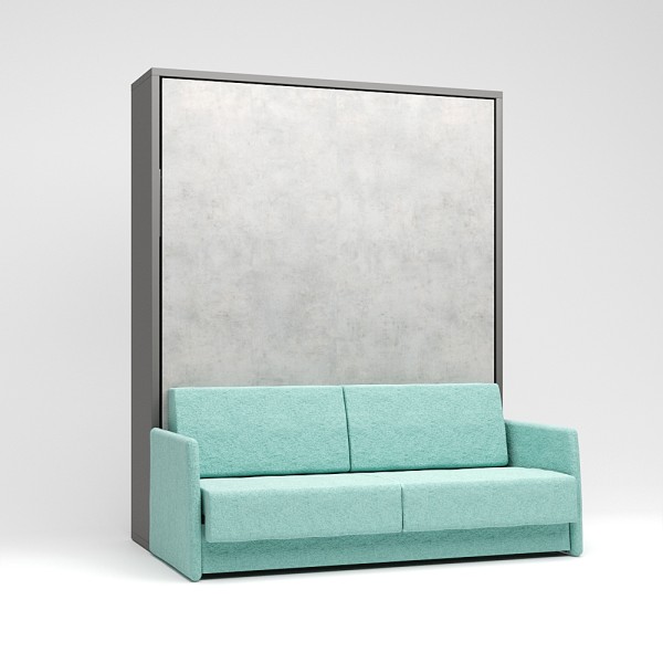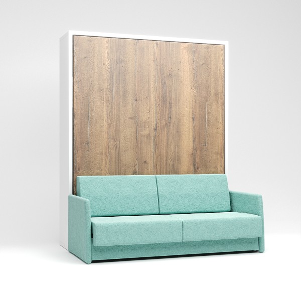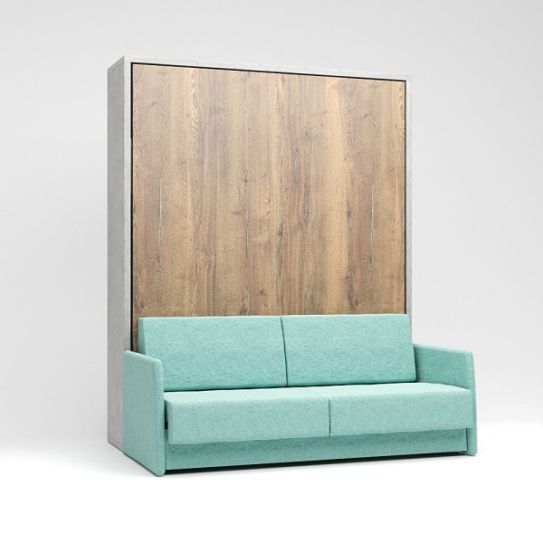 Ez a falágy a kanapéval kombinált függőleges falágyak sorozat tagja. A kétszemélyes matrac az ágy zárt állapotában álló pozícióban helyezkedik el. A szekrény legkisebb mélysége 45cm, ezáltal az ágy mögött egy kárpitozott fejtámla is helyet kaphatott. A kiemelt fejtámla felett egy keskeny rakodó felület található, melyre kisebb használati tárgyainkat helyezhetjük. A szekrényágy mélysége 45 és 60 cm között választható. A 60 cm korpusz mélység már a normál beépített szekrények mélységével azonos. A szekrény frontlapjához egy kényelmes, kétszemélyes kanapé csatlakozik, amely az ágy kinyitásakor együtt mozog a szekrény frontlapjával. A kanapé egy különleges vasalattal rendelkezik, ami lehetővé teszi az ülőfelület fokozatos süllyedését. A kanapéval kombinált szekrénybe rejtett ágy kiválóan alkalmas nappali vagy vendégszobákba, nyaralókba, szálláshelyekbe, alkalmi vagy rendszeres használatra egyaránt.