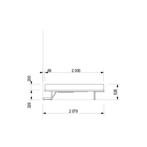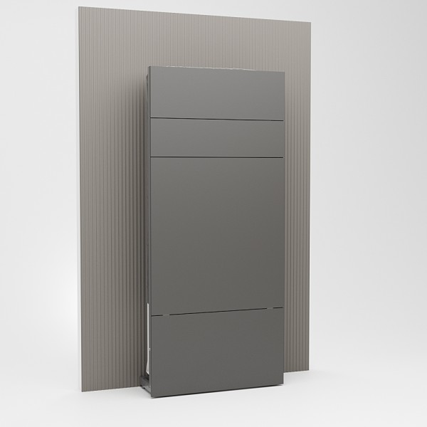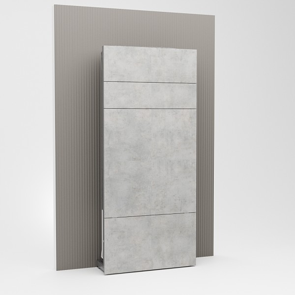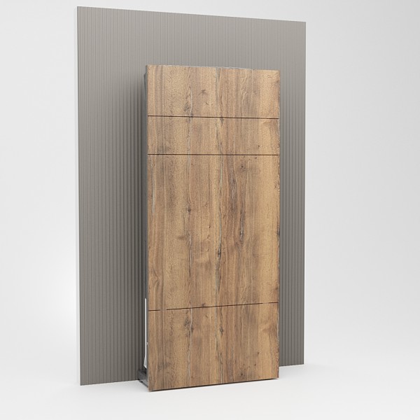 Ez az ágy bár a függőleges falágyak között szerepel, nem is klasszikus falágy, mivel a matracot és az ágyneműt csak egy frontlap takarja, amely csupán 35cm-re áll el a faltól. Így az ágynemű oldalról látható marad, de egy dekoratív frontlappal mégis a nappali dísze lehet. A matrac az ágy zárt állapotában álló pozícióban helyezkedik el. Mivel ennél a terméknél gyakorlatilag nincs is szekrény, ez a legkedvezőbb árú ágyunk.