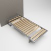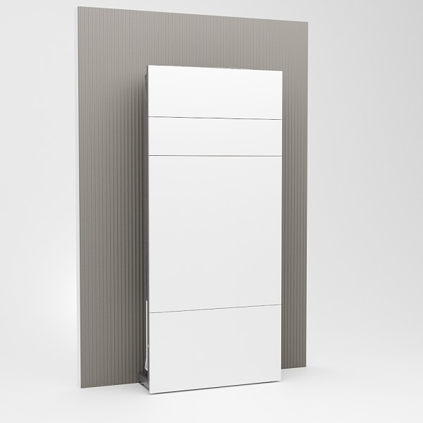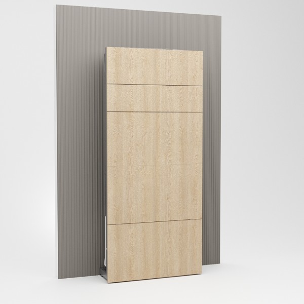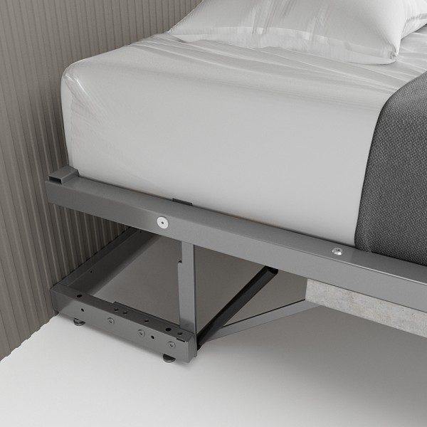 Nappal az ágy egy elegáns, diszkrét falpanelnek tűnik, mely alig foglal helyet a térben, de este, egy diszkrét zár kioldásával az ágy lassan, automatikusan lenyílik. Köszönhetően a prémium minőségű olasz vasalatnak, nem kell lemondanunk a hagyományos ágyak kényelméről és stabilitásáról. Az igényeinknek megfelelő fekvőfelületet masszív fém ágykeret és lábak, valamint rugalmas fa ágyrács támasztja meg. Az ágy lenyitása bármelyik pozícióban könnyen megállítható, köszönhetően a nagy teljesítményű teleszkópokkal kiegyensúlyozott mechanizmusnak.