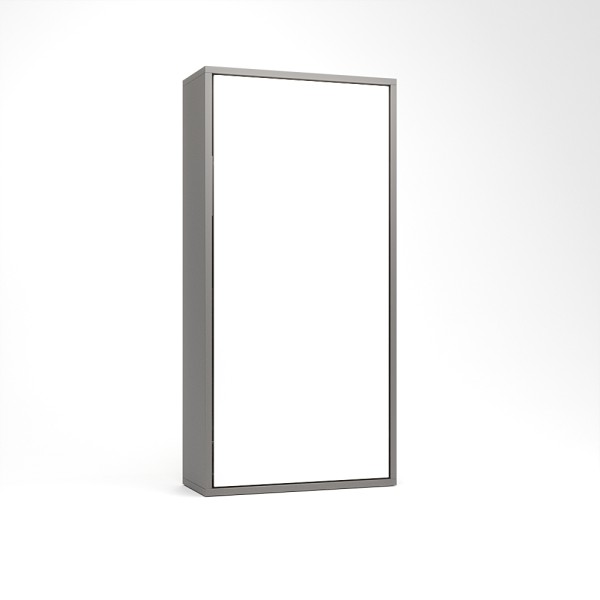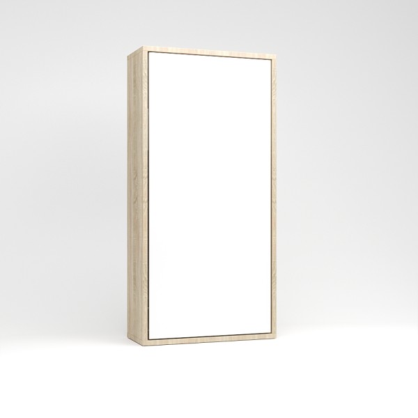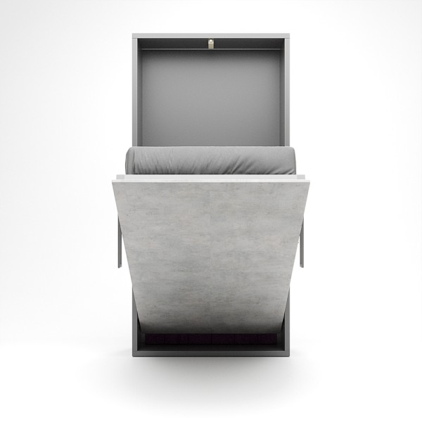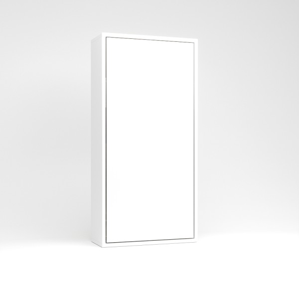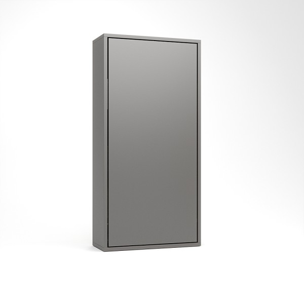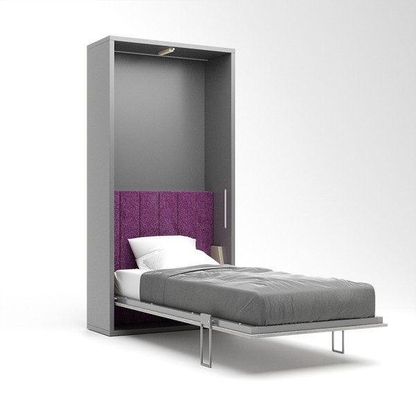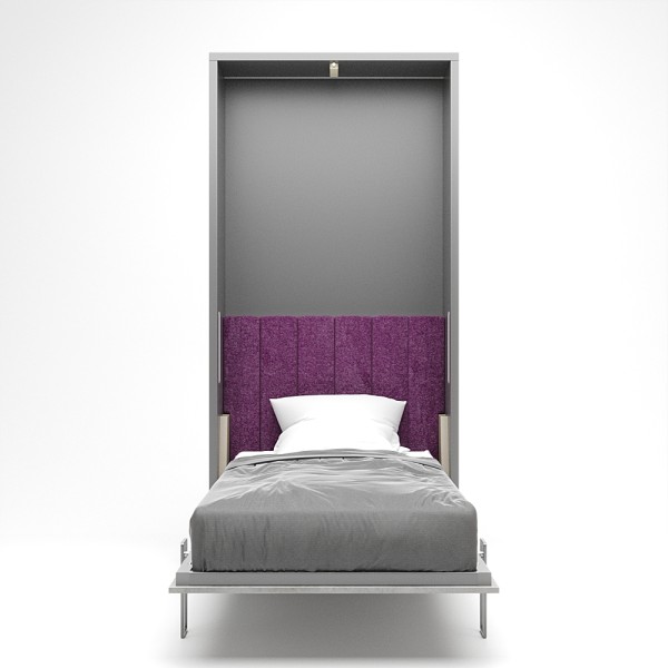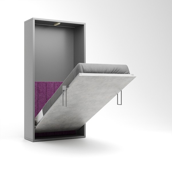 Ez a falágy a függőleges falágyak (VUP) sorozat tagja. A matrac az ágy zárt állapotában álló pozícióban helyezkedik el. A szekrény legkisebb mélysége 45cm mély, mivel egy kárpitozott fejtámla is beépítésre került. A fejtámla felett egy keskenyebb rakodó felület található, melyre kisebb használati tárgyainkat helyezhetjük. A szekrényágy mélysége 45 és 60 cm között választható. A 60 cm korpusz mélység már a normál beépített szekrények mélységével azonos. Kiválóan alkalmas kis lakásokba, vendég vagy dolgozó szobákba, alkalmi vagy rendszeres használatra egyaránt.